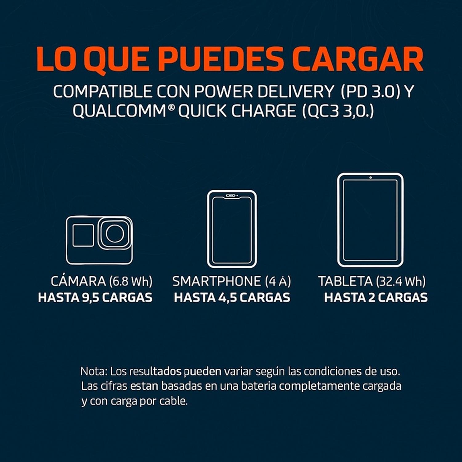 El RAMBLER® 20K de NEBO es un banco de energía portátil de alta capacidad (20.000 mAh), diseñado para mantenerte conectado en tus viajes, aventuras o días de trabajo. Compatible con carga rápida QC 3.0 y Power Delivery (PD) 20W, permite cargar hasta 2 dispositivos a la vez con eficiencia.